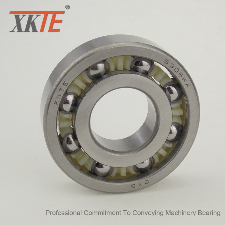 トラフアイドラー、コムアイドラー、インパクトアイドラー、リターンアイドラー、ガイドアイドラー、スパイラルアイドラー、トランジションアイドラー、フラットセルフアラインアイドラーなどのコンベヤーコンポーネント用のユニークなデザインの固着防止ナイロンリテーナーディープグルーヴボールベアリング